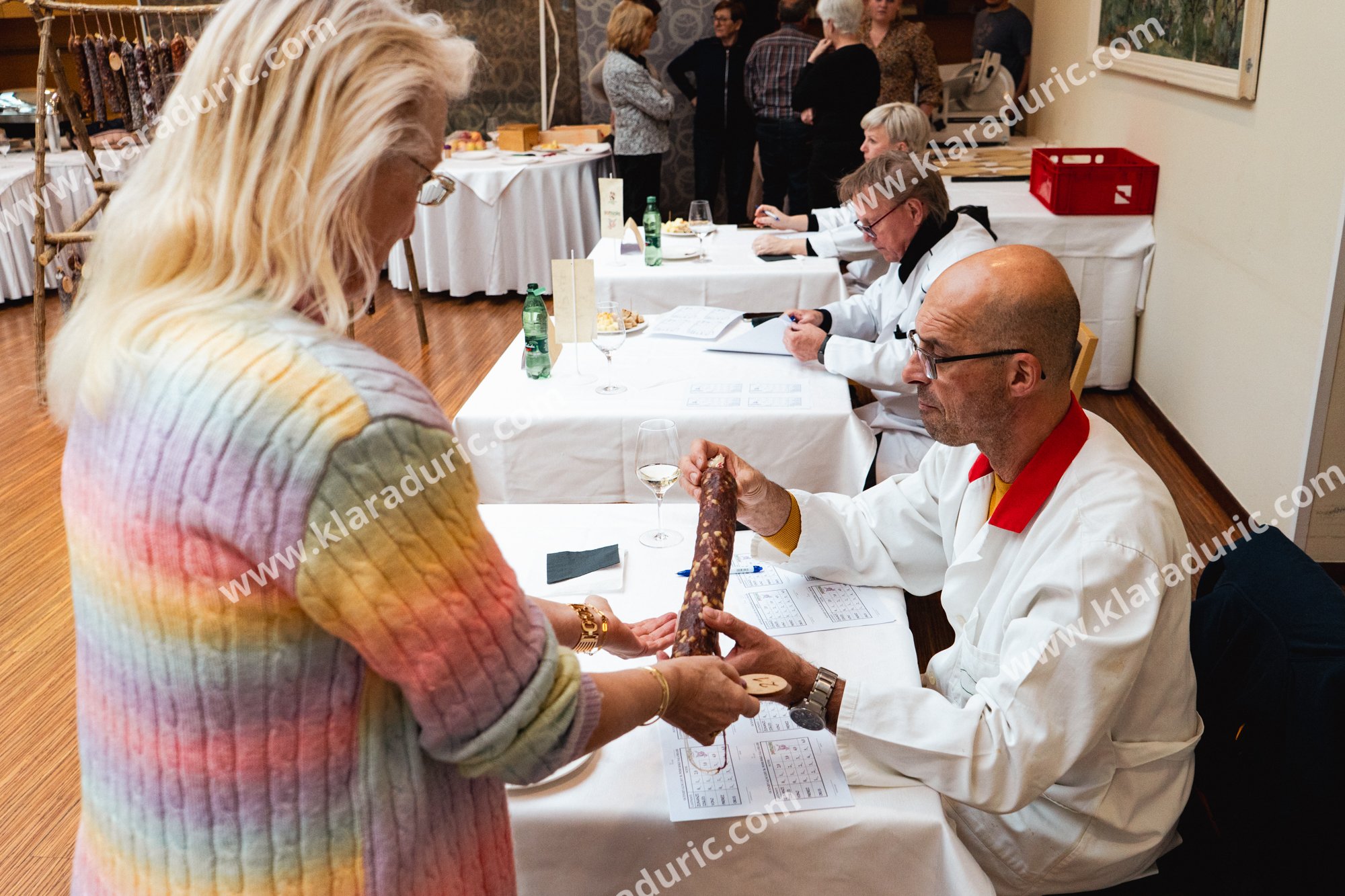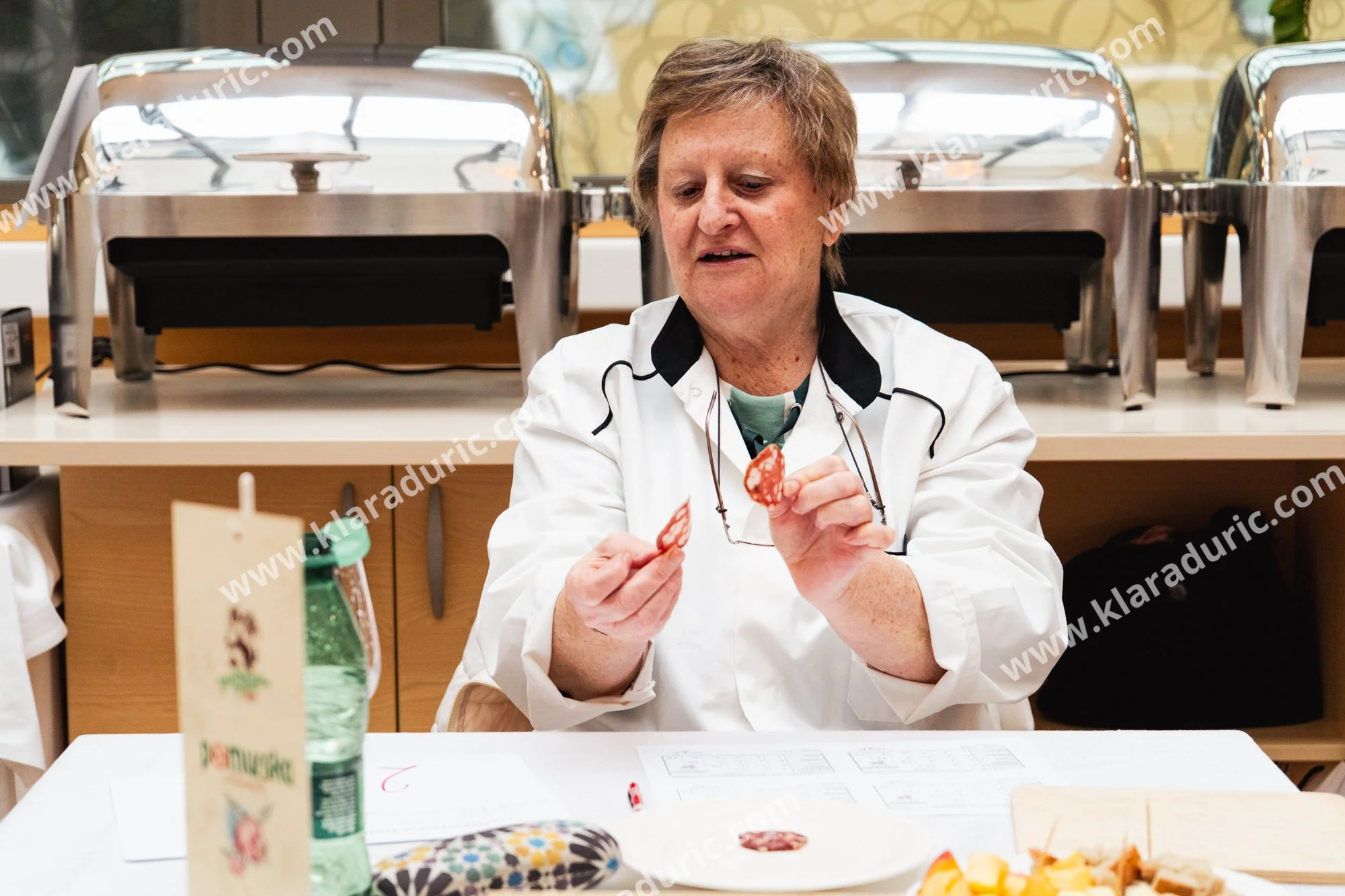 Danes je v Hotelu Radin potekalo natančno in strokovno ocenjevanje prispelih vzorcev. Letos je bilo zbranih 47 salam iz območja Pomurja, Prlekije in bližnje okolice, kar potrjuje, da tradicija izdelave domačih salam ostaja živa in cenjena.